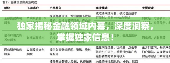 转载请注明来自瑞丽市段聪兰食品店,本文标题:《独家揭秘金融领域内幕,深度洞察,掌握独家信息!》