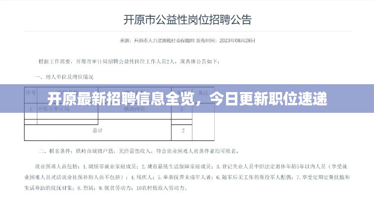 随着经济的持续发展,开原地区的企业正在积极扩张,招聘需求日益增长,本文将为您呈现开原今日的最新招聘信息,帮助您了解当地的就业市场。