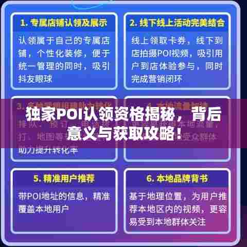 随着互联网的普及和数字化时代的来临,信息传播的渠道日益多样化,各种新兴概念层出不穷。"独家POI认领资格"作为一个新兴词汇,逐渐受到广泛关注,究竟什么是独家POI认领资格?如何获取这一资格?本文将对此进行一一解析。