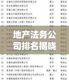 随着房地产市场的繁荣发展,地产法务行业也逐渐崭露头角,本文将为您揭示地产法务领域的强者,盘点业内公认的最强法务公司排名。