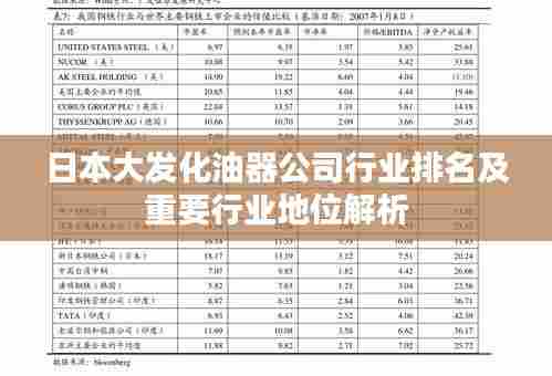 在全球化的今天,汽车行业的发展日新月异,其中化油器作为汽车关键部件之一,其生产公司的实力和地位不容忽视,日本大发化油器公司凭借其卓越的技术和创新能力,在行业内赢得了极高的声誉,本文将探讨日本大发化油器公司在行业内的排名及其重要地位。