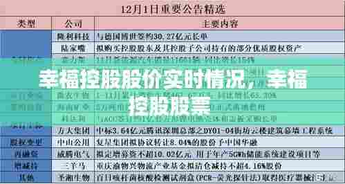 幸福控股作为一家多元化的大型企业集团,其股价的实时情况对于投资者来说至关重要。本文通过对幸福控股股价的实时数据、影响因素和走势分析,为投资者提供了参考。然而,投资有风险,投资者在做出投资决策时,还需结合自身情况,谨慎操作。