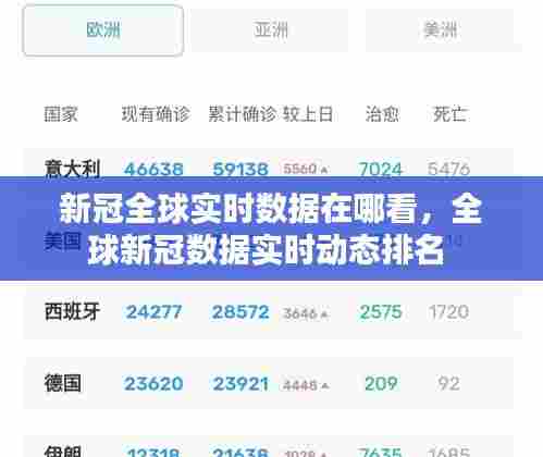 获取新冠全球实时数据有多种途径,包括世界卫生组织、约翰斯·霍普金斯大学、各国卫生部门官方网站、社交媒体和新闻平台以及手机应用程序等。通过这些渠道,我们可以及时了解疫情的最新动态,为个人防护和公共卫生决策提供依据。在疫情期间,保持关注权威数据,科学防控,是我们共同的责任。