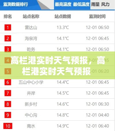 高栏港实时天气预报主要包括以下内容: