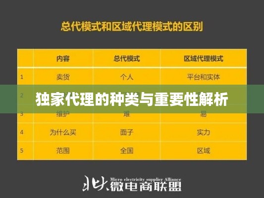 在商业领域中,独家代理是一种重要的商业模式,广泛应用于各种行业,本文将深入探讨独家代理的种类以及其在商业运营中的重要性。