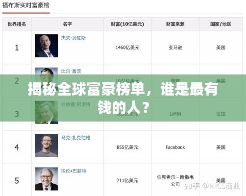 转载请注明来自瑞丽市段聪兰食品店,本文标题:《揭秘全球富豪榜单,谁是最有钱的人?》