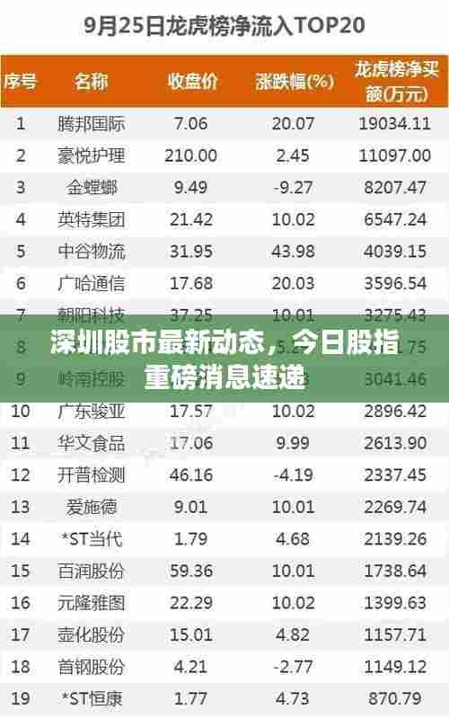 随着全球经济的日益一体化,股市成为了反映一个国家经济健康程度的重要窗口,深圳股市作为重要的经济指标之一,其动态变化备受关注,本文将为您带来深圳今日股指的最新消息。