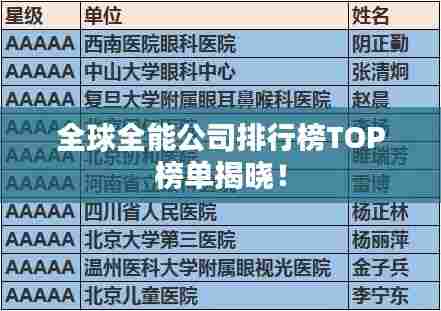 随着全球经济一体化的进程不断加速,各大公司在全球范围内的竞争也日益激烈,在这样的背景下,全能公司以其卓越的综合实力,在全球范围内崭露头角,本文将为您揭示世界上全能公司的排名。