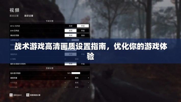 随着科技的不断发展,高清画质已经成为了游戏中不可或缺的一部分,对于喜欢战术类游戏的玩家来说,如何设置高清画质,以获取更好的游戏体验,是一个值得探讨的话题,本文将为大家介绍战术最新高清画质设置推荐,帮助玩家在游戏中获得更好的视觉体验。