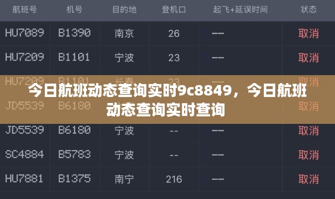 随着科技的不断进步,航班动态查询变得前所未有的便捷。今天,我们特别关注航班号9C8849的实时动态,为您带来最新的航班信息。