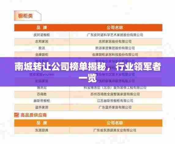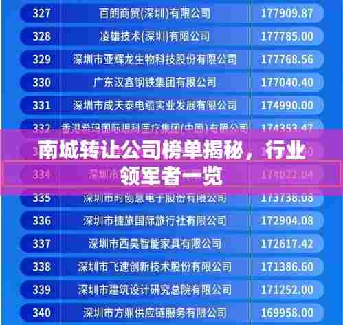 转载请注明来自瑞丽市段聪兰食品店,本文标题:《南城转让公司榜单揭秘,行业领军者一览》