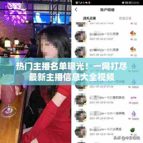 随着互联网的普及和直播行业的飞速发展,越来越多的网友热衷于观看直播,其中主播们的魅力与才艺成为了吸引粉丝的重要因素,网络上曝光了一批最新主播名单,引发了广泛关注,本文将为大家带来一篇关于最新曝光主播名单大全的视频文章,让您一网打尽热门主播信息。