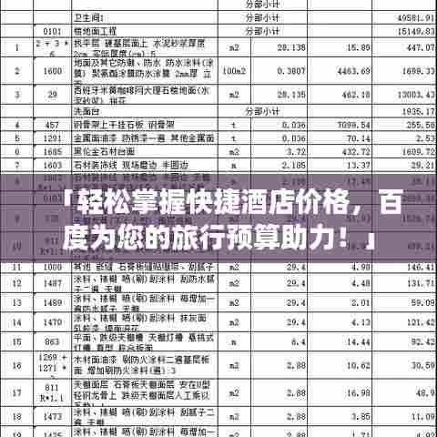 在当今信息化社会,互联网为我们提供了便捷的信息查询渠道,通过百度搜索,您可以快速找到各大快捷酒店的官方网站,从而获取最新的酒店价格信息,还可以通过搜索引擎找到酒店预订平台,比较不同酒店的房价、服务、设施等方面的差异,为您的旅行提供预算参考。