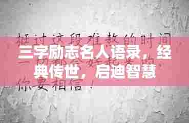 人生在世,难免会遇到各种困难和挑战,面对这些挑战,我们需要一些励志的话语来鼓舞自己的勇气和信心,我将分享一些名人经典语录,这些语录都是三个字简短而富有力量的励志名言,希望能够激励你不断前行。