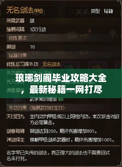 琅琊剑阁作为一款热门的角色扮演游戏,吸引了大量玩家的加入,对于即将毕业的玩家来说,掌握最新的毕业攻略是非常重要的,本文将为大家提供一份详细的琅琊剑阁毕业攻略,帮助大家顺利毕业。
