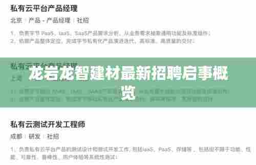 随着建筑行业的蓬勃发展,龙岩龙智建材作为业内翘楚,一直在寻求优秀人才的加入,本文将为您详细介绍龙岩龙智建材的最新招聘信息,帮助您了解公司的招聘需求以及应聘流程。