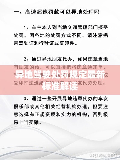 随着我国交通事业的迅速发展,异地驾驶越来越普遍,为了更好地规范驾驶员的行为,保障道路交通安全,各地不断对异地驾驶处罚规定进行调整和更新,本文将详细介绍最新的异地驾驶处罚规定标准,以提醒广大驾驶员注意遵守交通法规,确保安全驾驶。