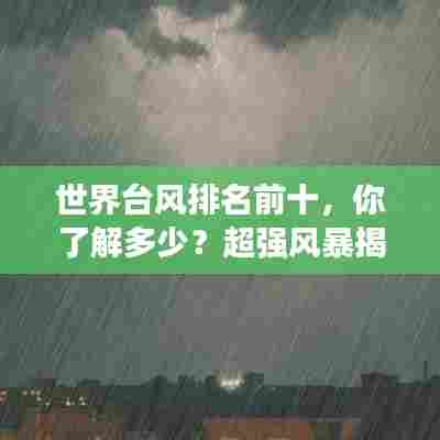 台风是热带气旋的一种,其强度、影响范围和带来的灾害都是相当惊人的,在世界范围内,有些台风因其超强的破坏力和广泛的影响范围而备受关注,本文将为您介绍世界台风排名前十,这些台风都曾在历史上留下了深刻的印记。