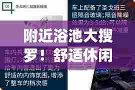 通过“百度一下附近的浴池”,我们可以轻松找到附近的浴池,了解设施情况,提前做好准备,在体验舒适休闲的沐浴时光后,我们还可以通过网络平台分享自己的体验,与他人互动交流,在搜索附近的浴池时,我们还需要注意一些事项,确保自己的健康和安全。